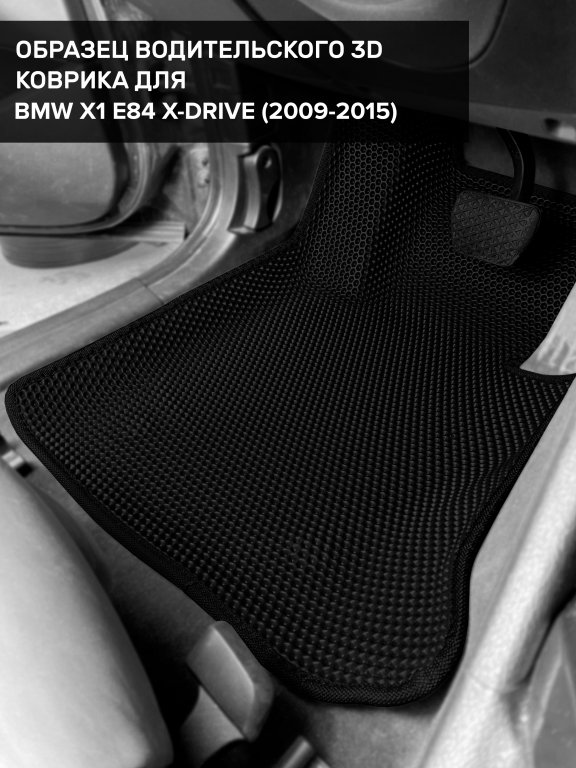 Автомобильные 3д коврики для BMW X1 E84 4WD (2009-2015) в салон авто и багажник сделаны из инновационного полимерного материала EVA, изысканная структура в виде ячеек не дает воде, пыли и снегу разлетаться по салону машины и багажнику. 3д коврики зафиксированы на полу определенными клипсами, соответствующими BMW X1 E84 4WD (2009-2015), и не двигаются в процессе езды.