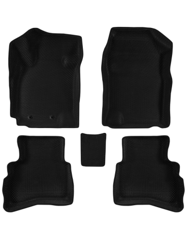 Автомобильные 3д коврики для JAC JS4 (2020-н.в) в салон авто и багажник сделаны из инновационного полимерного материала EVA, изысканная структура в виде ячеек не дает воде, пыли и снегу разлетаться по салону машины и багажнику. 3д коврики зафиксированы на полу определенными клипсами, соответствующими JAC JS4 (2020-н.в), и не двигаются в процессе езды.