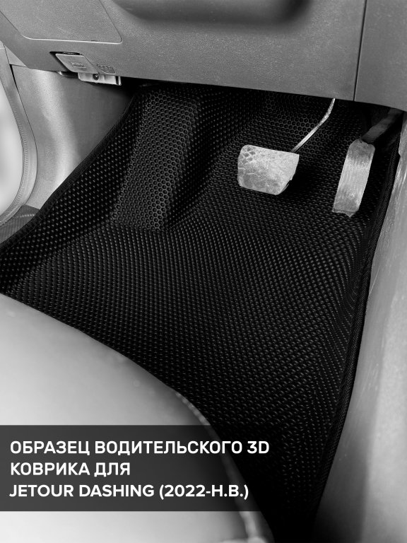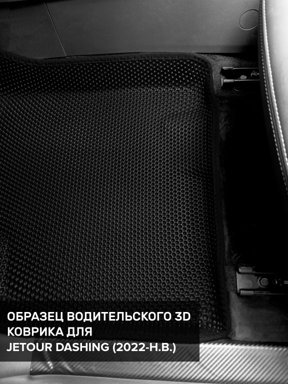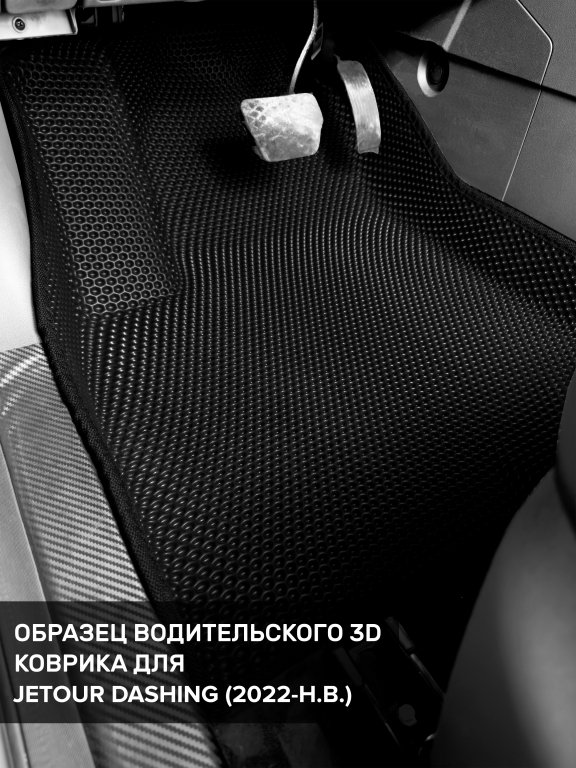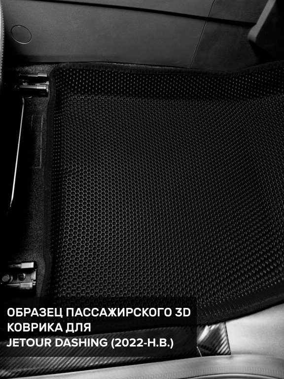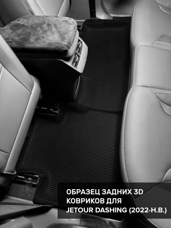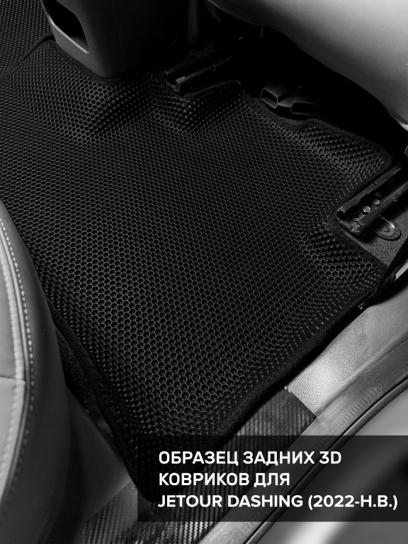 Автомобильные 3д коврики для Jetour Dashing (2022-н.в) в салон авто и багажник сделаны из инновационного полимерного материала EVA, изысканная структура в виде ячеек не дает воде, пыли и снегу разлетаться по салону машины и багажнику. 3д коврики зафиксированы на полу определенными клипсами, соответствующими Jetour Dashing (2022-н.в), и не двигаются в процессе езды.