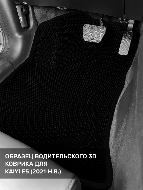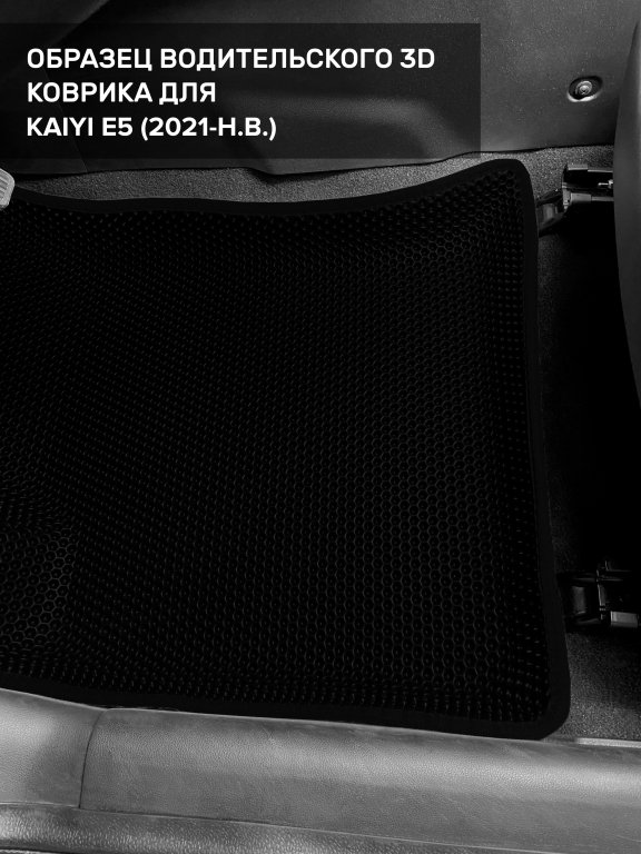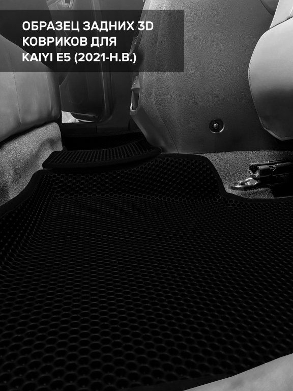 Автомобильные 3д коврики для Kaiyi E5 (2021-н.в.) в салон авто и багажник сделаны из инновационного полимерного материала EVA, изысканная структура в виде ячеек не дает воде, пыли и снегу разлетаться по салону машины и багажнику. 3д коврики зафиксированы на полу определенными клипсами, соответствующими Kaiyi E5 (2021-н.в.), и не двигаются в процессе езды.