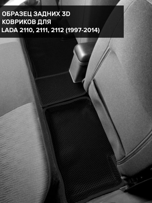 Автомобильные 3д коврики для Lada 2110, 2111, 2112 (1995-2014) в салон авто и багажник сделаны из инновационного полимерного материала EVA, изысканная структура в виде ячеек не дает воде, пыли и снегу разлетаться по салону машины и багажнику. 3д коврики зафиксированы на полу определенными клипсами, соответствующими Lada 2110, 2111, 2112 (1995-2014), и не двигаются в процессе езды.