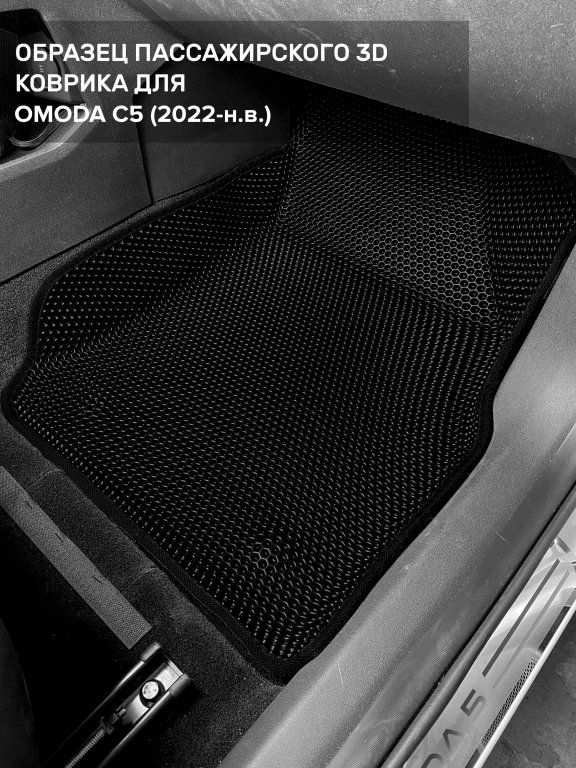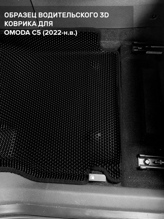 Автомобильные 3д коврики для Omoda C5 (2022-н.в.) в салон авто и багажник сделаны из инновационного полимерного материала EVA, изысканная структура в виде ячеек не дает воде, пыли и снегу разлетаться по салону машины и багажнику. 3д коврики зафиксированы на полу определенными клипсами, соответствующими Omoda C5 (2022-н.в.), и не двигаются в процессе езды.